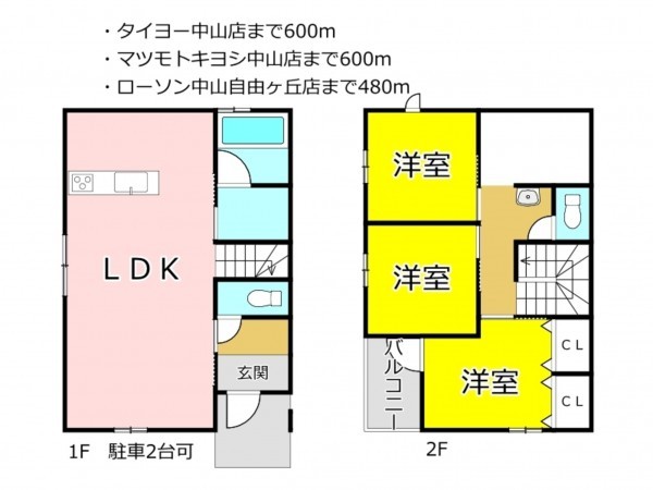 - ウォークインクローゼット、駐車場2台分