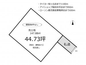 鹿児島市道からの接道は2M幅の私道になっております。 - 取引態様