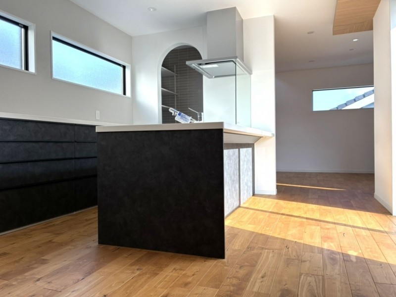- システムキッチン、食器洗浄乾燥機、IHクッキングヒーター、洗浄便座、浴室乾燥機、複層ガラス、ウォークインクローゼット、モニタ付インターホン、駐車場3台分、トイレ2箇所、浴室暖房、温水洗浄便座、タンクレストイレ、オープンキッチン、浄水器、3口以上コンロ、全居室収納、EV車充電設備、シューズインクローゼット、クローゼット、省エネ給湯器、室内物干し、クッションフロア、電気、庭、ワイドバルコニー、ウッドデッキ、人感センサー付照明、ダウンライト、間接照明、照明器具、火災警報器(報知機)