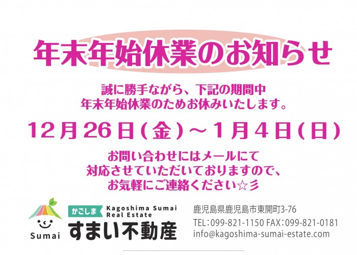 3. 年末年始休業のお知らせ